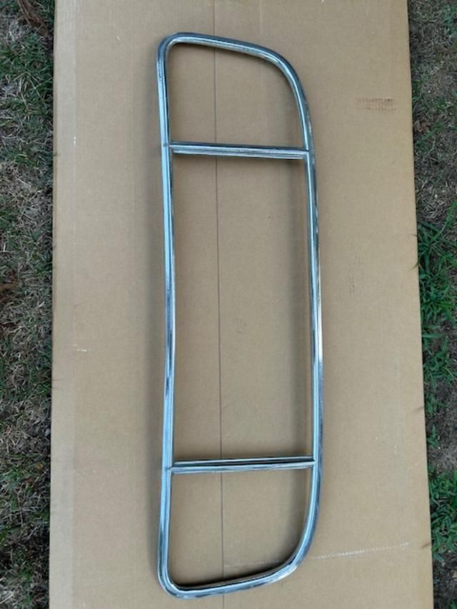 REAR WINDOW EXTERIOR CHROME MOLDING IN VERY GOOD ORIGINAL CONDITION.